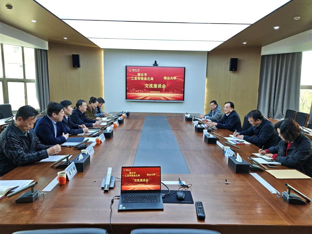 为深入推进学校“强基筑峰年”重点工作落地见效,进一步深化校城融合、赋能地方产业高质量发展,3月18日,烟台市工业和信息化局党组书记、局长张宏一行受邀来校交流,推进校城融合发展有关工作。党委常委、副校长梁勇,党委常委、统战部部长毕朝辉出席座谈会,合作发展处(服务烟台办公室)主要负责人及相关教师代表等参加座谈。